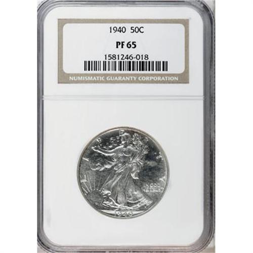 <B>1940 50C PR65 NGC.</B></I> A gorgeous and boldly struck Gem, untoned save for hints of olive toning and a daub of milky patina to the right of Liberty's arm. In 1940, the mintage of proof halves reached five figures for the first time, and later issues never fell below that figure.<BR><BR><B>Coin Engraver:</B> Adolph A. Weinman<BR><BR><b>Shipping:</b> Coins & Currency (<a target="_blank" href="http://www.heritageauctions.com/common/shipping.php">view shipping information</a>)