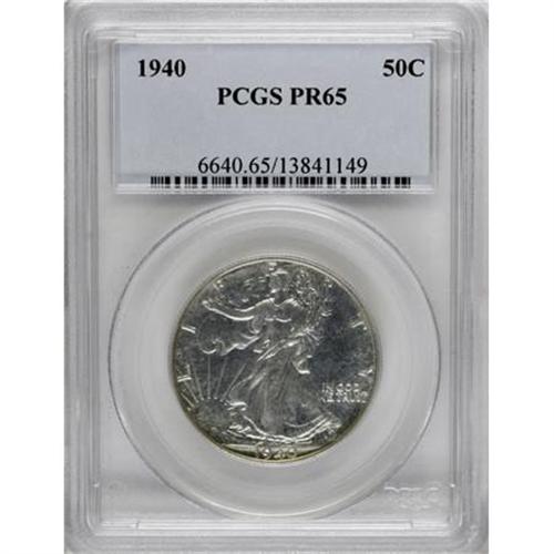 <B>1940 50C PR65 PCGS.</B></I> . PCGS Population (967/1048). NGC Census: (552/5317). Mintage: 11,279. Numismedia Wsl. Price for NGC/PCGS coin in PR65: $630. (#6640)<BR><BR><B>Coin Engraver:</B> Adolph A. Weinman<BR><BR><b>Shipping:</b> Coins & Currency (<a target="_blank" href="http://www.heritageauctions.com/common/shipping.php">view shipping information</a>)