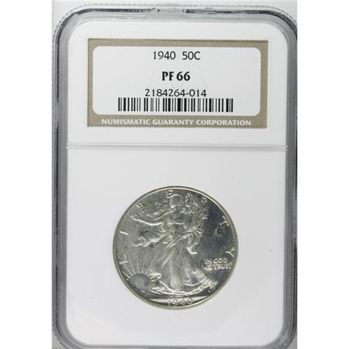 <B>1940 50C PR66 NGC.</B></I> An appealing example that has carefully preserved surfaces. The slightly hazy silver-gray mirrors are somewhat shallow, though the exceptional detail of the piece confirms its identity as a proof.<BR><BR><b>Shipping:</b> Coin/Currency (<a target="_blank" href="http://www.heritageauctions.com/common/shipping.php">view shipping information</a>)