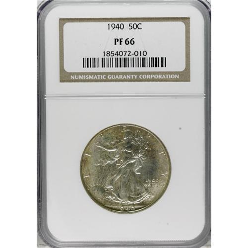 <B>1940 50C PR66 NGC.</B></I> The designer's monogram is partially present, and has been engraved by hand into the proof reverse die. Dappled sea-green and rose shades enrich this beautiful Premium Gem. An original and aesthetic contribution to the advanced proof collection.<BR><BR><b>Shipping:</b> Coins & Currency (<a target="_blank" href="http://www.heritageauctions.com/common/shipping.php">view shipping information</a>)