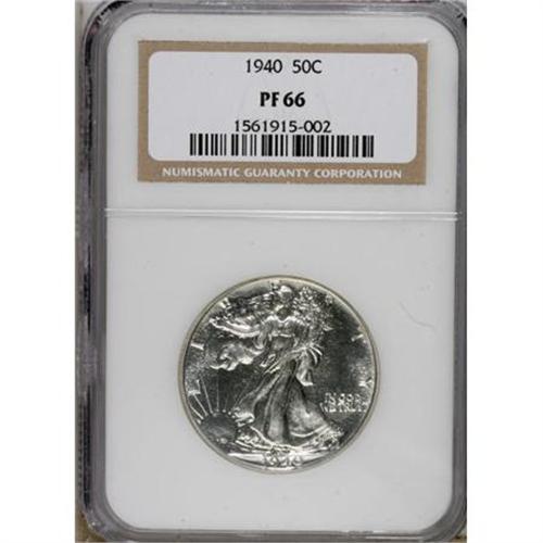 <B>1940 50C PR66 NGC.</B></I> The design elements exhibit razor-sharp definition, and both sides of the coin are pristine. The highly reflective fields show deep pools of watery reflectivity, and slight frosting on the silver-gray devices. <BR><BR><b>Shipping:</b> Coins & Currency (<a target="_blank" href="http://www.heritageauctions.com/common/shipping.php">view shipping information</a>)