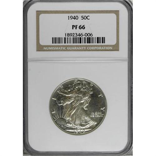 <B>1940 50C PR66 NGC.</B></I> Crisply struck and expertly preserved, with nicely reflective fields and a slight degree of mottled tan-beige patina on the silver-gray surfaces. Free of marks or hairlines. <BR><BR><B>Coin Engraver:</B> Adolph A. Weinman<BR><BR><b>Shipping:</b> Coins & Currency (<a target="_blank" href="http://www.heritageauctions.com/common/shipping.php">view shipping information</a>)