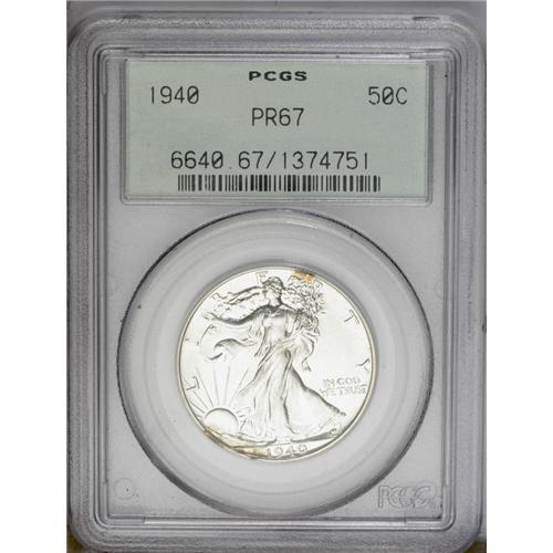1940 50C PR67 PCGS. Luminous proof surfaces display a 1940[50C] PR67 PCGS.