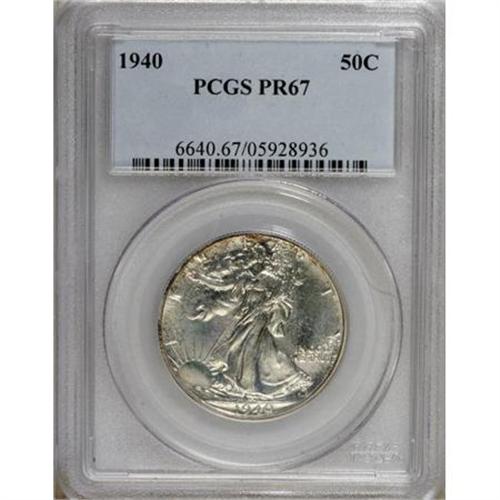 <B>1940 50C PR67 PCGS.</B></I> Deeply mirrored fields on each side, with a little imagination one can see a bit of contrast, especially on the reverse. Slightly speckled golden patina is seen on both obverse and reverse. An impressive proof striking.<BR><BR><b>Shipping:</b> Coins & Currency (<a target="_blank" href="http://www.heritageauctions.com/common/shipping.php">view shipping information</a>)