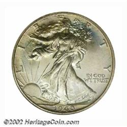 1940 50C PR68 NGC. Essentially a perfect type coin, each side has a light accent of pale, hazy lilac and rose patina that is most attractive. Simply an awesome coin and one of the finest proof Walkers we have seen of any date. Population: 21 in 68, 0 finer (7/02). Important notice: We expect to be auctioning lots at the rate of 200-250 per hour. Sometimes eBay Premier live bid software cannot keep up with that pace, so we strongly recommend that you place a realistic proxy bid now as insurance to avoid disappointment. Also please note that all Heritage/CAA lots purchased through eBay Premier carry a 20% Buyer's Premium. Please make sure you read the Terms and Conditions.