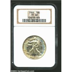 1940 50C PR68 NGC. Essentially a perfect type coin, each side has a light accent of pale, hazy lilac
