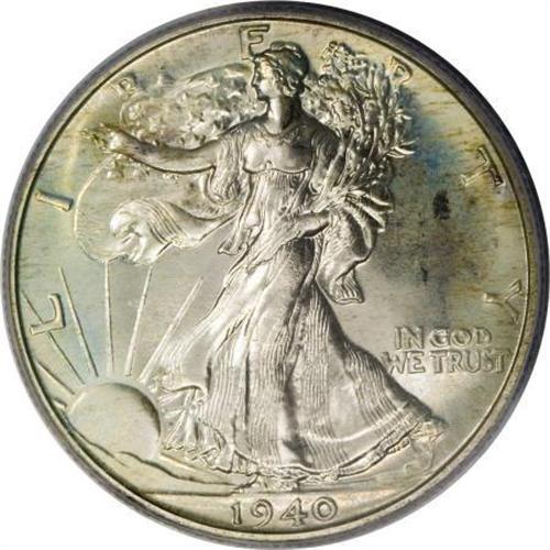 <B>1940 50C PR68 PCGS.</B></I> Original delicate caramel-gold and olive grace this immaculate Superb Gem. The strike is needle-sharp, with definition on the head, skirt lines, and branch hand rarely encountered on business strikes of the series. The proof mintage is about half that of the 1942. Population: 31 in 68, 0 finer (10/07).<BR><BR><B>Coin Engraver:</B> Adolph A. Weinman<BR><BR><b>Shipping:</b> Coins & Currency (<a target="_blank" href="http://www.heritageauctions.com/common/shipping.php">view shipping information</a>)
