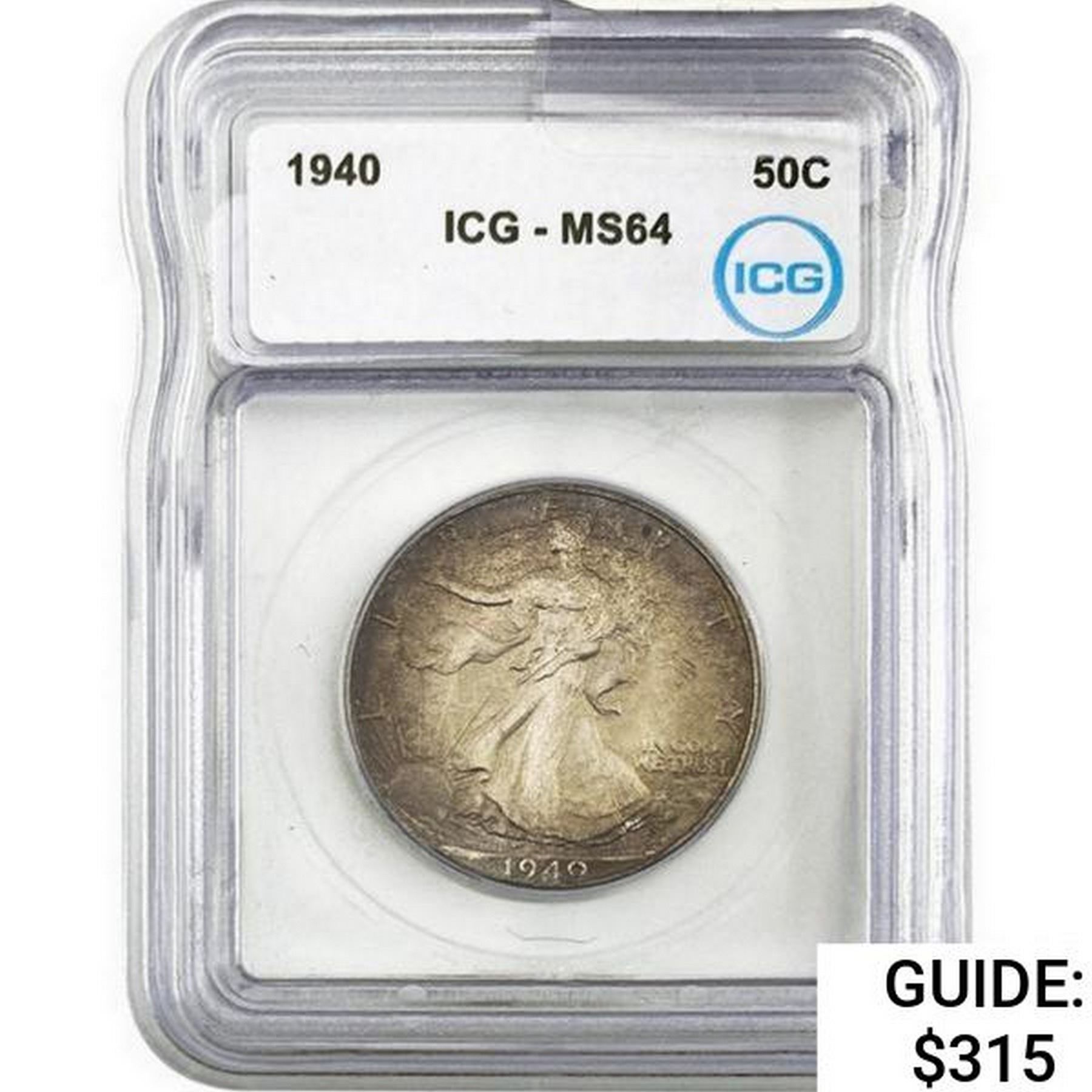 1940 50C Walking Liberty Half ICG MS64