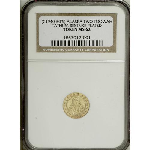<B>(1940-50s) Alaska Two Toowah Tathum Plated Restrike MS62 NGC.</B></I> This has to be one the nicest one of these that we have seen. This lacks the typical areas where the plating has worn off and should command a premium at auction time.<BR><BR><b>Shipping:</b> Coins & Currency (<a target="_blank" href="http://www.heritageauctions.com/common/shipping.php">view shipping information</a>)