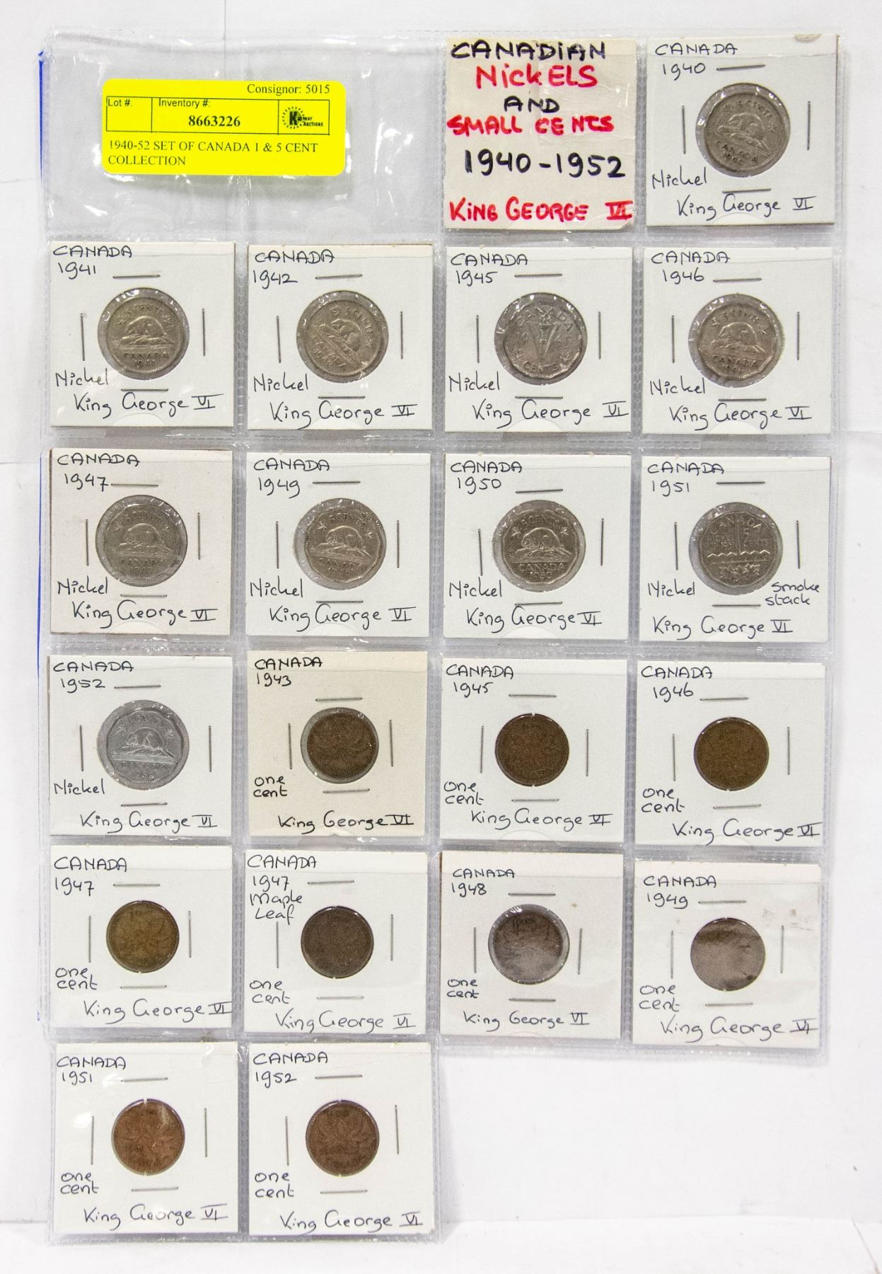 1940-52 SET OF CANADA 1 & 5 CENT COLLECTION