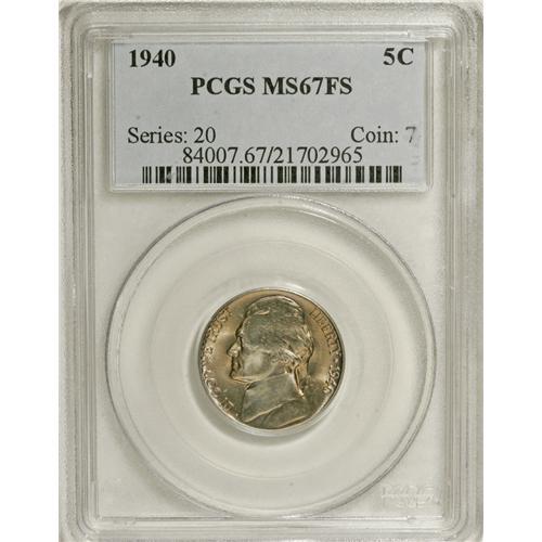 1940 5C MS67 Full Steps PCGS. Light apricot-golden pat
