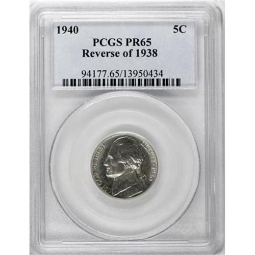 <B>1940 5C Reverse of 1938 PR65 PCGS.</B></I> PCGS Population (18/40). NGC Census: (17/25). Numismedia Wsl. Price for NGC/PCGS coin in PR65: $305. (#94177)<BR><BR><b>Shipping:</b> Coins & Currency (<a target="_blank" href="http://www.heritageauctions.com/common/shipping.php">view shipping information</a>)