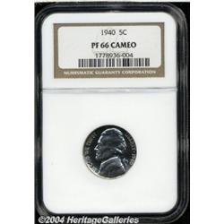 <B>1940<5C> Reverse of 1940 PR66 Cameo NGC.</B></I> A well struck Gem with a fully brilliant untoned appearance overall. Each side portrays a pronounced cameo effect due to light frosting on the devices. The so-called "reverse of 1940" is considered much more available than the earlier "reverse of 1938" variety. <BR><BR><B>Important notice:</B> Heritage usually auctions material at the rate of 200-250 lots per hour. On some occasions eBay Live bid software or the Internet may not be able to keep up with the pace of the auction. We recommend placing a realistic absentee bid now as insurance to avoid disappointment. Occasionally the auctioneer may eliminate or reject an eBay Live bid, and the auctioneer may also reopen a lot after the close of the eBay live bidding (usually because we missed an audience bid), and may reject your bid even if it shows you as the winning bidder. By bidding via eBay Live, you agree that Heritage may award the lot to another bidder at its sole discretion under the circumstances described above or any other reasonable circumstances. Since eBay bids are not shown to us until we open the lot on the floor, we treat those bids just like floor bids. In most cases the floor responds before the eBay bid is presented to us, due to Internet lag time, so for consistency we have made it a policy that floor bids are always considered first over tie eBay live bids. Also please note that all Heritage lots purchased through eBay Live carry a 20% Buyer's Premium. Please make sure you read the Terms and Conditions before you bid. </span></font></tr></table></td></tr></table>