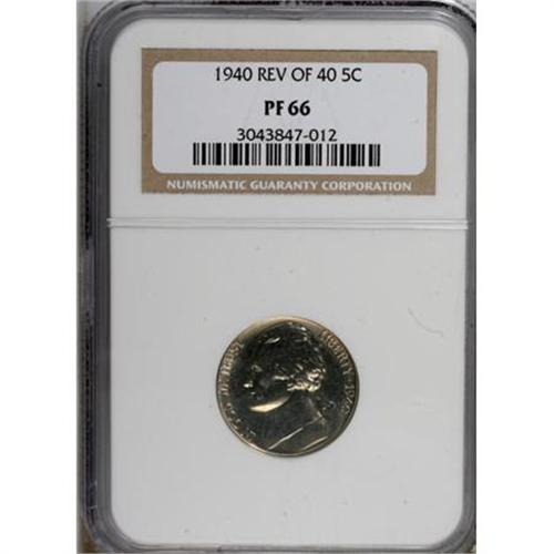 <B>1940 5C Reverse of 1940 PR66 NGC.</B></I> NGC Census: (186/51). PCGS Population (488/105). Mintage: 14,158. Numismedia Wsl. Price for NGC/PCGS coin in PR66: $116. (#4177)<BR><BR><B>Coin Engraver:</B> Felix Schlag<BR><BR><b>Shipping:</b> Coins & Currency (<a target="_blank" href="http://www.heritageauctions.com/common/shipping.php">view shipping information</a>)