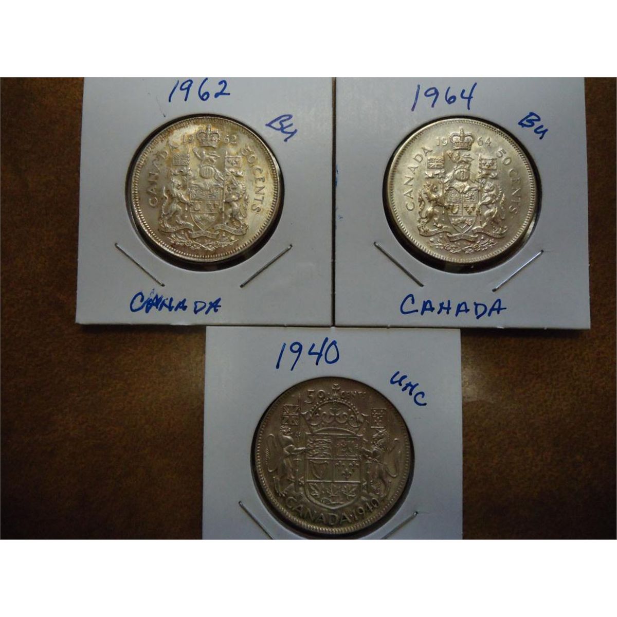 1940, 62 & 64 CANADA SILVER 50 CENTS (UNC)