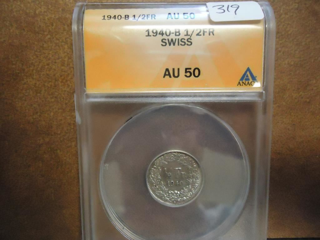1940-B SWISS SILVER 1/2 FRANC ANACS AU50