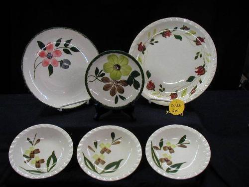 1940 BLUE RIDGE SOUTHERN POTTERIES HND. PTD. INCLUDES (1) 10 1/2in PLATE inRING-O-ROSESin PIE CRUST (W/CHIP), (1) 9 5/8in inPINKIEin SKYLINE EXCELLENT, (1) 6 1/8in BREAD PLATE inGREEN BRAIRin EXCELLENT, (3) 6 1/8in BOWLS inSPRAYin PIECRUST, 6 PC