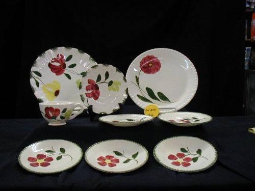 1940 BLUE RIDGE SOUTHERN POTTERIES HND. PTD. INCLUDES inBETTYin CANDLESTICK (5) SAUCERS, (1) 9 1/4in inMOUNTAIN ROSEin CANDLESTICK, (1) 9 3/8in PLATE, (1) SAUCER, (1) CUP, 9 PC