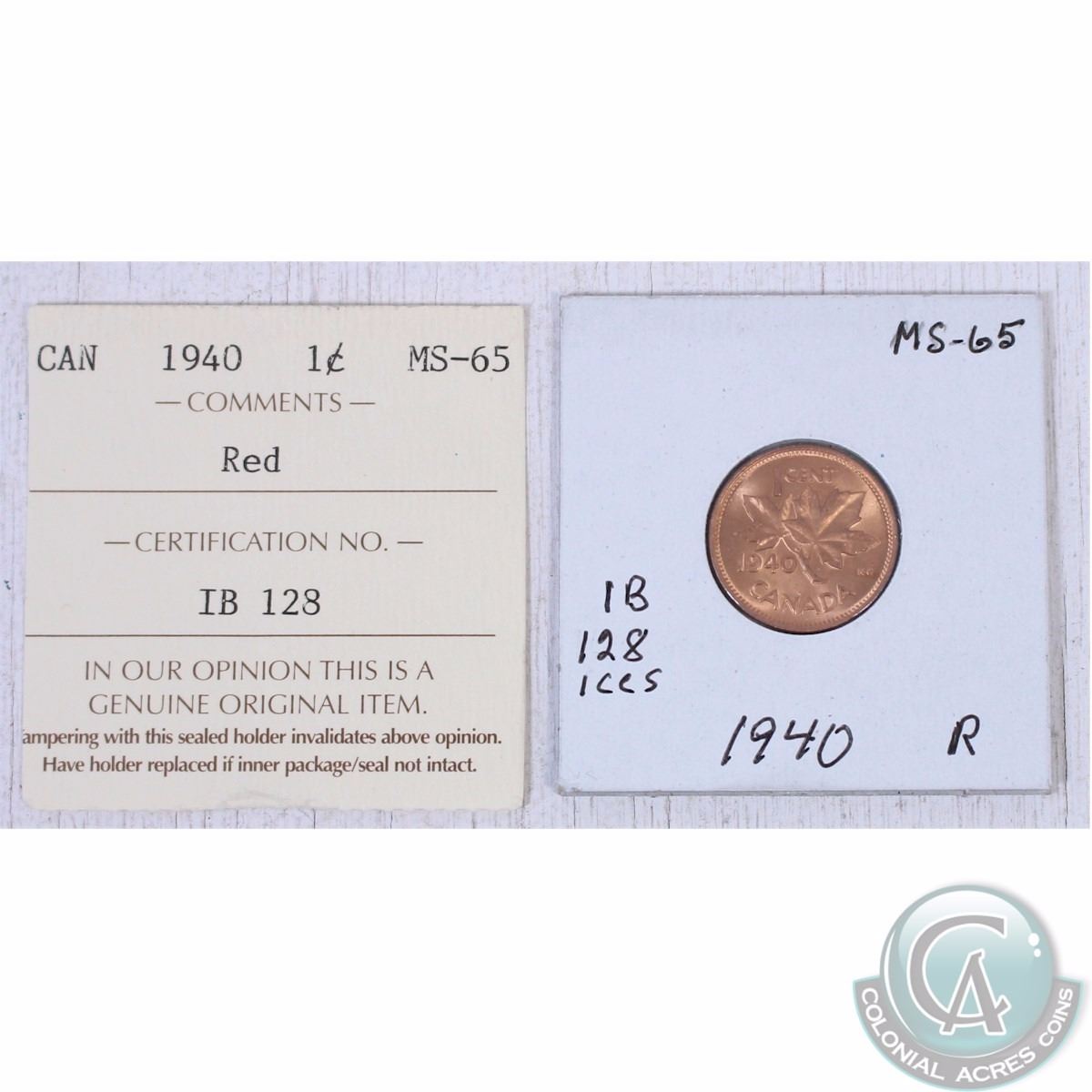 1940 Canada 1-cent MS-65 as stated on the holder. This coin was initially certified by ICCS, however the owner has removed the coin from the ICCS Holder.