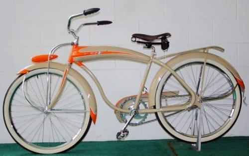 1940 Colson Bicycle - Totally Professional Restoration. Tan with orange stripes.