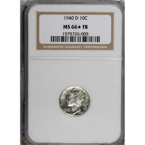 <B>1940-D 10C MS66</B></I> S<B> Full Bands NGC.</B></I> NGC Census: (552/188). PCGS Population (914/300). Mintage: 21,198,000. Numismedia Wsl. Price for NGC/PCGS coin in MS66: $60. (#5025)<BR><BR><B>Coin Engraver:</B> Adolph A. Weinman<BR><BR><b>Shipping:</b> Coins & Currency (<a target="_blank" href="http://www.heritageauctions.com/common/shipping.php">view shipping information</a>)