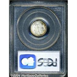 <B>1940-D<10C> MS68 Full Bands PCGS.</B></I> Fully struck and satiny, with pristine surfaces and luscious charcoal and purple-red patina near the right side borders of both obverse and reverse. Population: 16 in 68, 0 finer (3/04). <BR><BR><B>Important notice:</B> Heritage usually auctions material at the rate of 200-250 lots per hour. On some occasions eBay Live bid software or the Internet may not be able to keep up with the pace of the auction. We recommend placing a realistic absentee bid now as insurance to avoid disappointment. Occasionally the auctioneer may eliminate or reject an eBay Live bid, and the auctioneer may also reopen a lot after the close of the eBay live bidding (usually because we missed an audience bid), and may reject your bid even if it shows you as the winning bidder. By bidding via eBay Live, you agree that Heritage may award the lot to another bidder at its sole discretion under the circumstances described above or any other reasonable circumstances. Since eBay bids are not shown to us until we open the lot on the floor, we treat those bids just like floor bids. In most cases the floor responds before the eBay bid is presented to us, due to Internet lag time, so for consistency we have made it a policy that floor bids are always considered first over tie eBay live bids. Also please note that all Heritage lots purchased through eBay Live carry a 20% Buyer's Premium. Please make sure you read the Terms and Conditions before you bid.