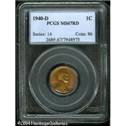 1940-D 1C MS67 Red PCGS. Brick-red in color, the w 1940-D 1C MS67 Red PCGS.