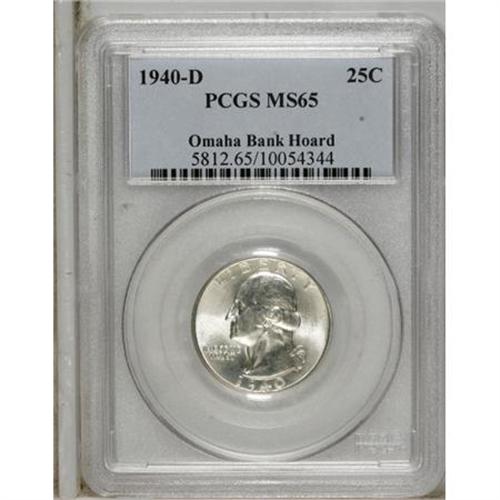 1940-D 25C MS65 PCGS. Ex: Omaha Bank Hoard. PCGS P