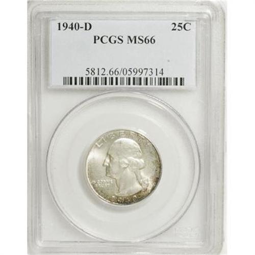 <B>1940-D 25C MS66 PCGS.</B></I> PCGS Population (275/18). NGC Census: (240/37). Mintage: 2,797,600. Numismedia Wsl. Price for NGC/PCGS coin in MS66: $360. (#5812)<BR><BR><B>Coin Engraver:</B> John Flanagan<BR><BR><b>Shipping:</b> Coins & Currency (<a target="_blank" href="http://www.heritageauctions.com/common/shipping.php">view shipping information</a>)