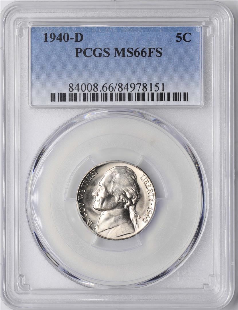 One 1940-D Jefferson Nickel Coin PCGS MS66FS. PCGS Graded.