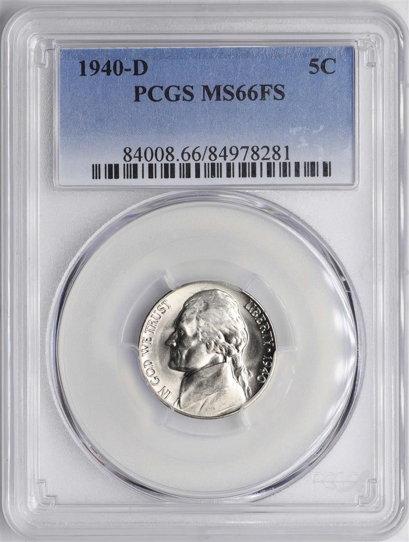 One 1940-D Jefferson Nickel Coin PCGS MS66FS. PCGS Graded.