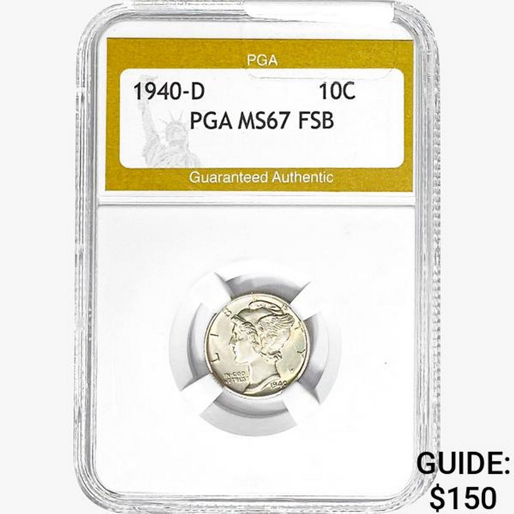 1940-D Mercury Silver Dime PGA MS67 FSB