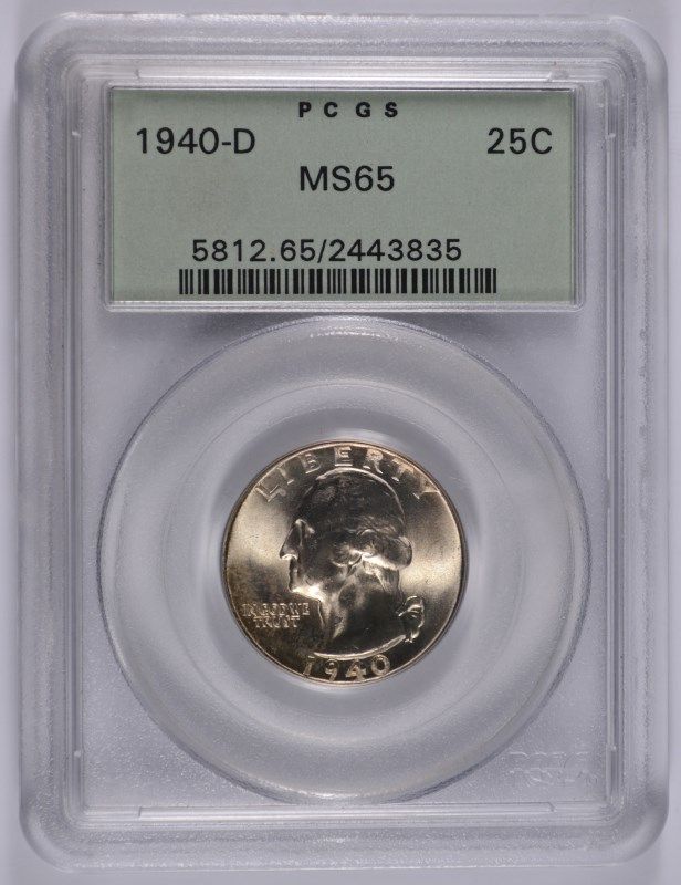 1940-D WASHINGTON QUARTER, PCGS MS-65 BLAST WHITE!