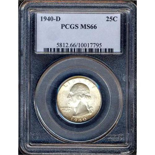 <b>1940-D Washington Quarter Dollar. PCGS graded MS66.</b> Bright and lustrous, a gem <b>(PCGS # 5812)</b> <i>