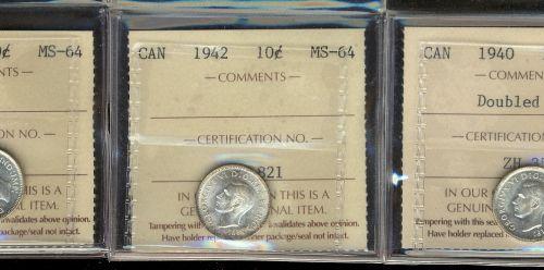 1940 Doubled 9, 1942, 1946 all three pieces are graded by ICCS MS64