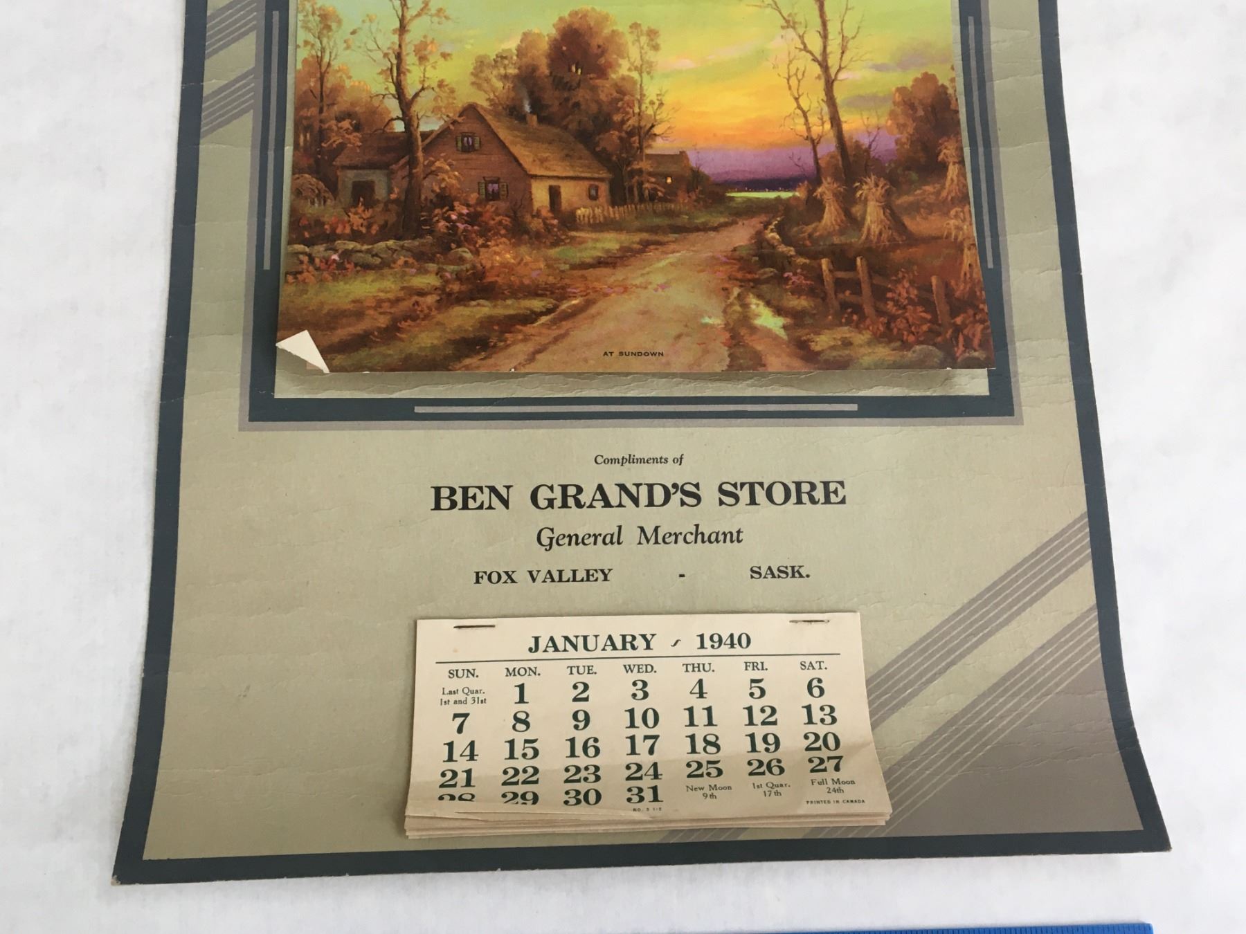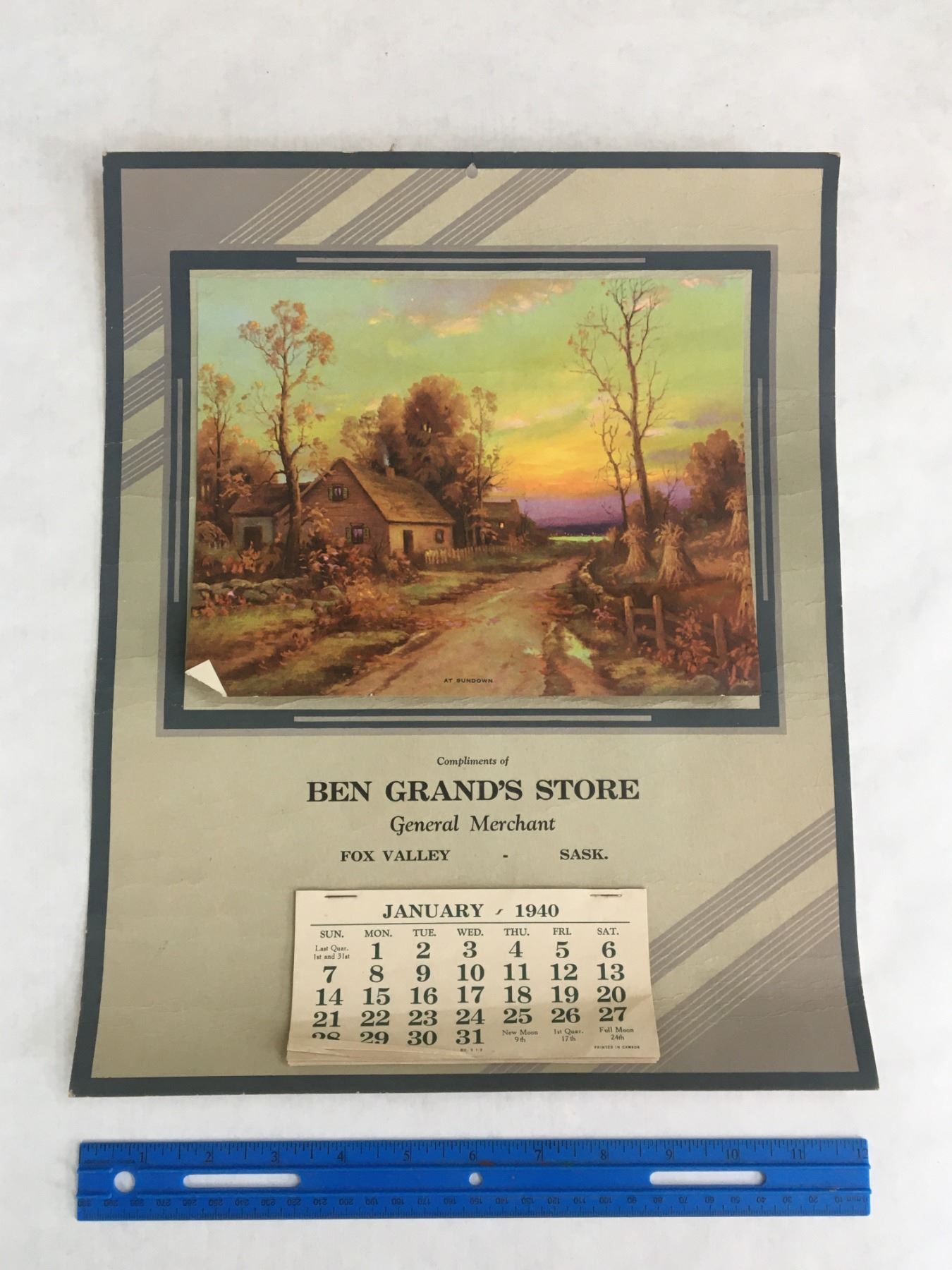 1940 FOX VALLEY SASK ADVERTISING CALENDAR