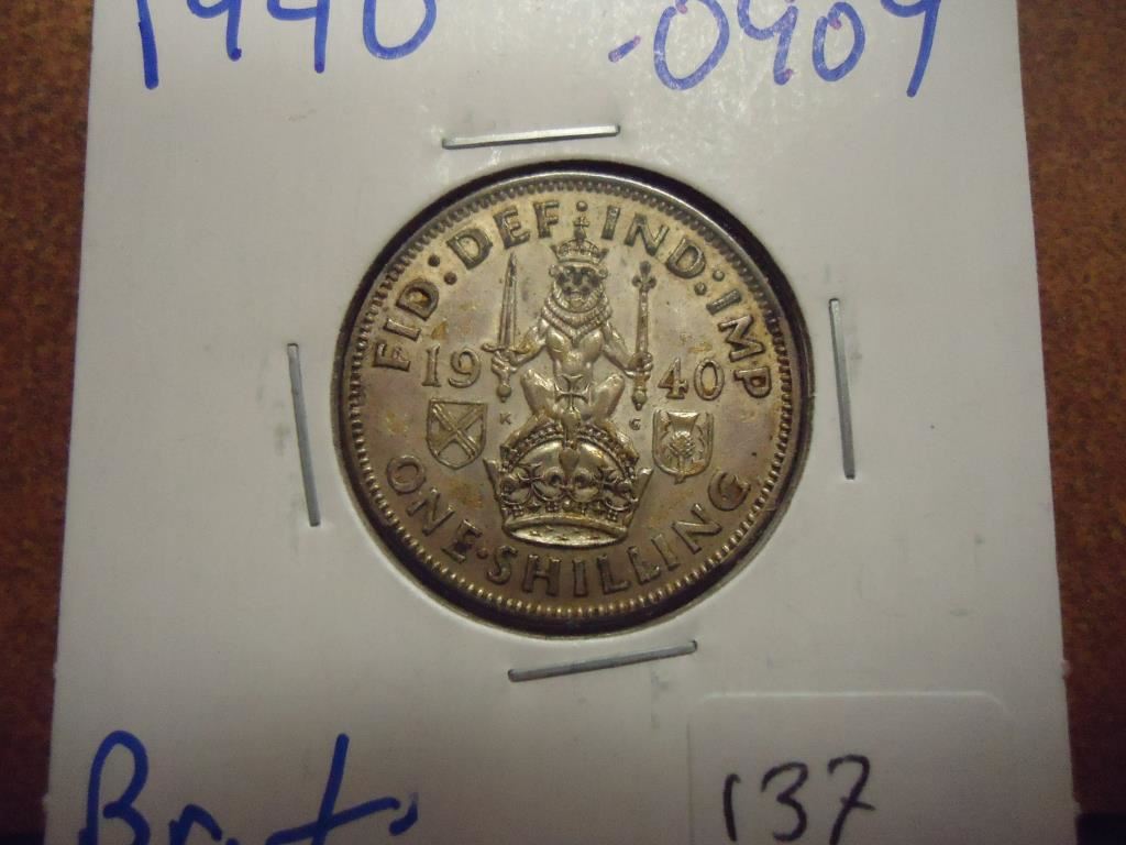 1940 GREAT BRITAIN SILVER SHILLING .0909 OZ. ASW