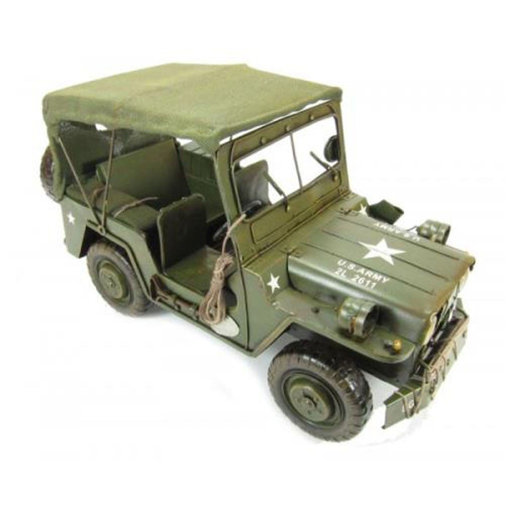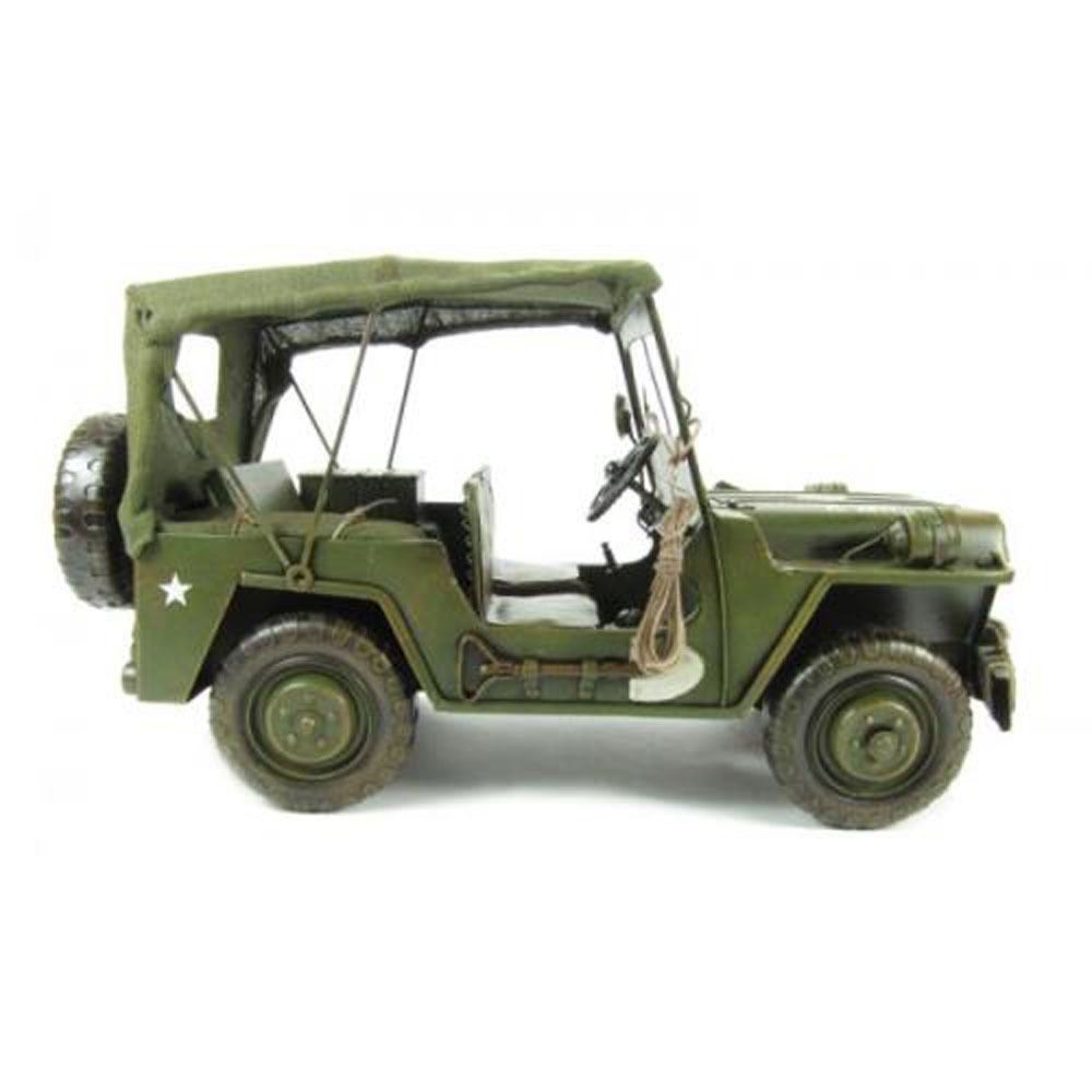 Beautifully handmade and so each piece is a unique collectible and show piece for your home. Decoration parts comes with stickers to match your scene, Plastic die-cast metal, Ultra precision design with some moving parts where applicable, Decoration parts decals accurately reproduced. Decorate for any table, desk, or shelf in sporty fashion with Our Rustic Willy’s Overland US Army Jeep . Featuring a rustic iron frame, this charming vintage Classic Car includes a fine detail’s. The Green metal seat and handlebars are finished in natural colors. Size: 7X12X7 Inches. Weight: 10 LBS.