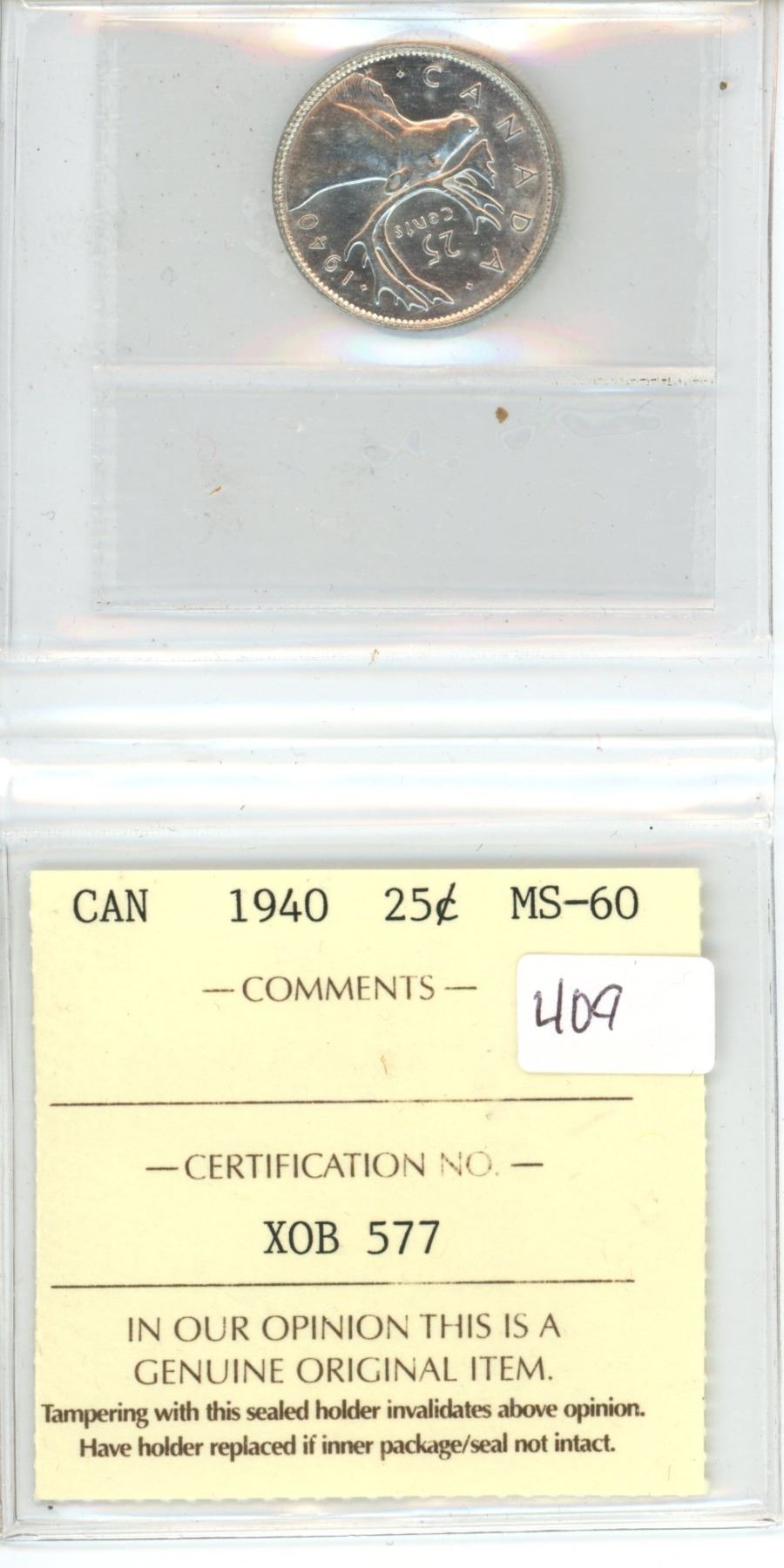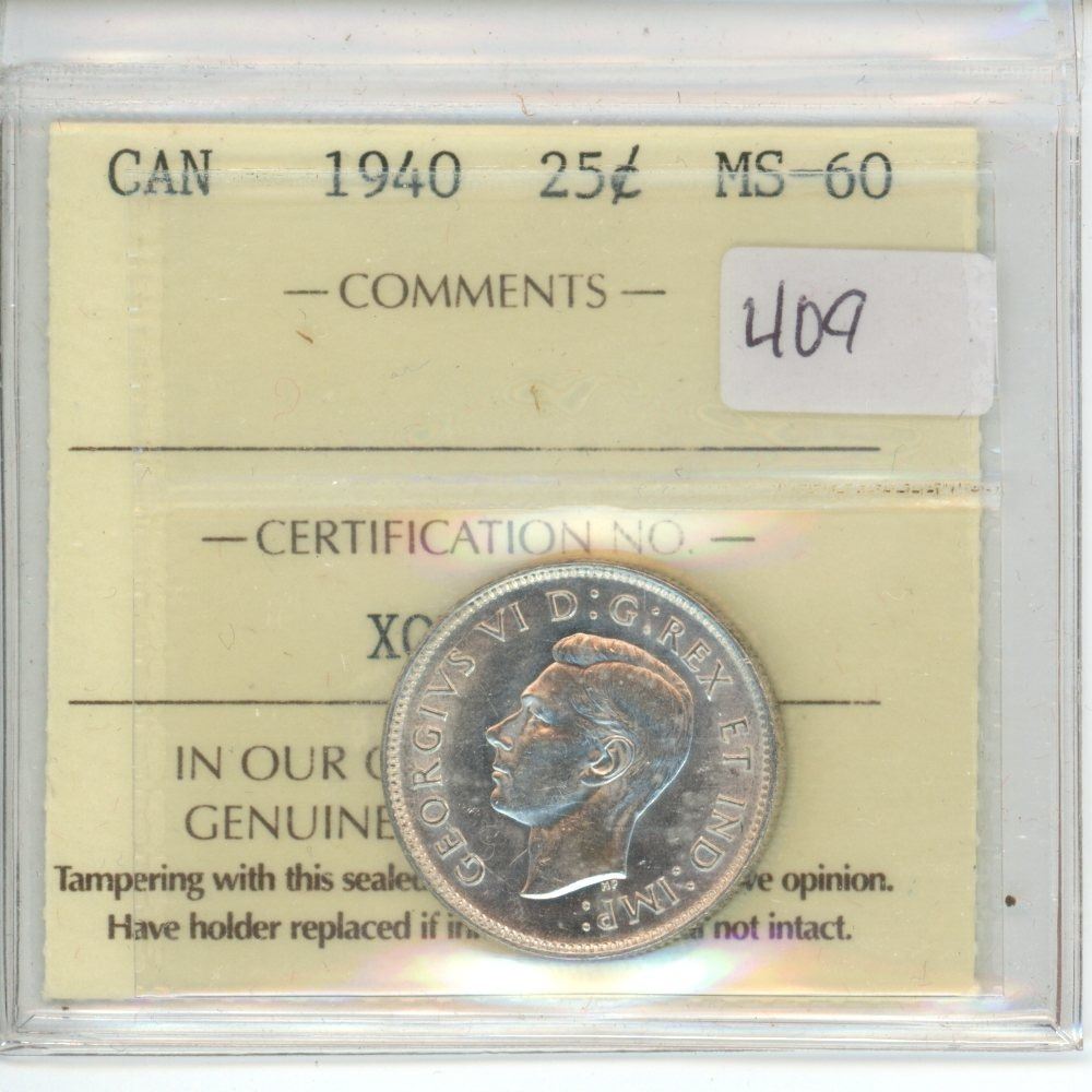 1940 - ICCS Graded Canadian Twenty-Five Cent Piece