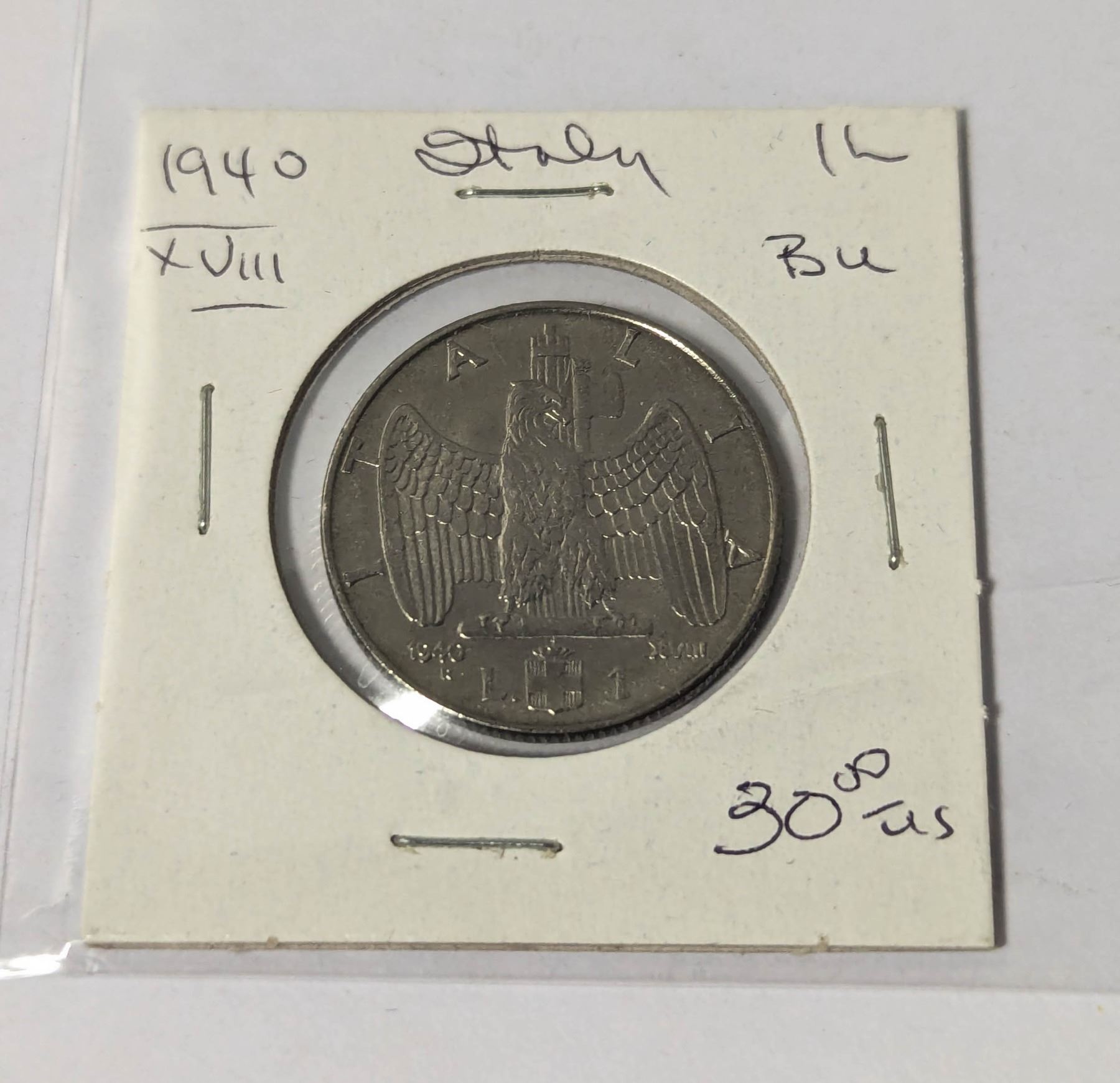 1940 ITALY 1 LIRA COIN, BRILLIANT UNCIRCULATED