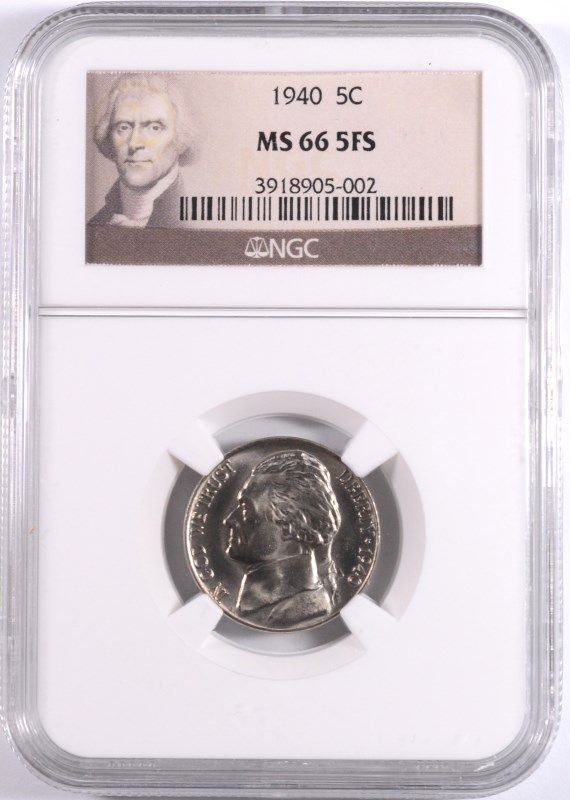 1940 JEFFERSON NICKEL, NGC MS-66 5 FULL STEPS!