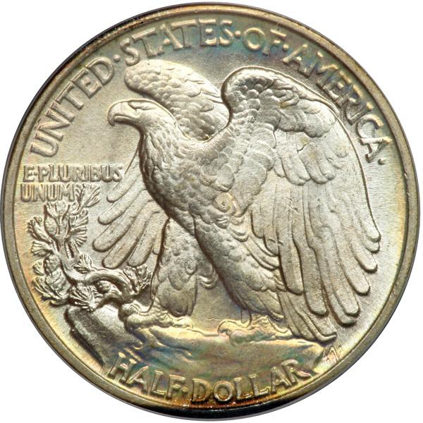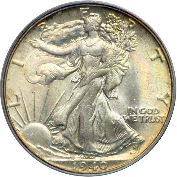 1940 Liberty Walking Half Dollar. PCGS graded MS-66. Lovely rainbow toning on both sides (PCGS # 6609) .