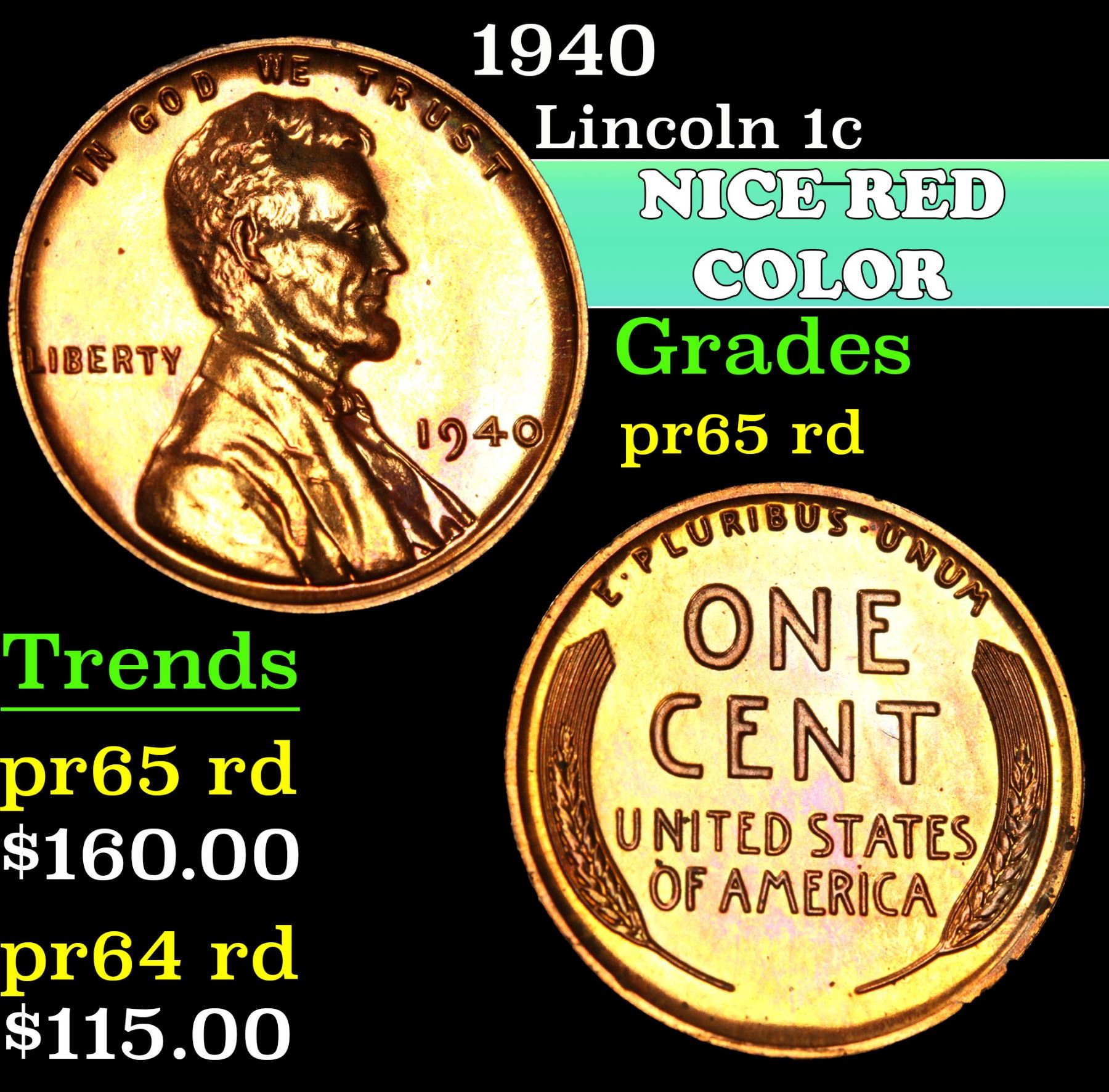1940 . . Lincoln Cent 1c Grades Gem Proof Red.