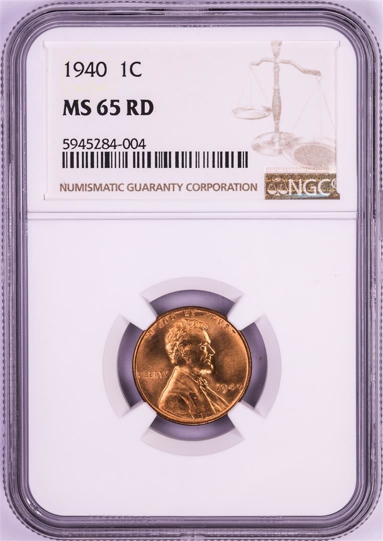 One 1940 Lincoln Wheat Cent Coin NGC MS65RD. NGC Certified.
