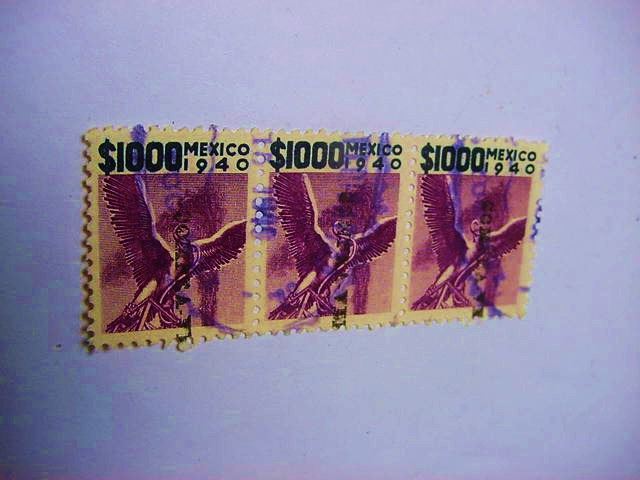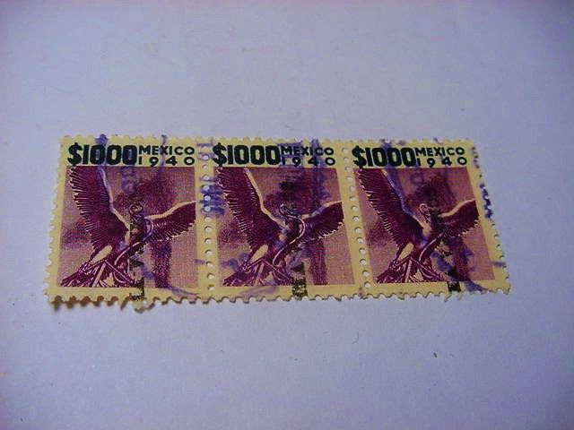 1940 MEXICO 1000 PESOS STAMP STRIP OF 3