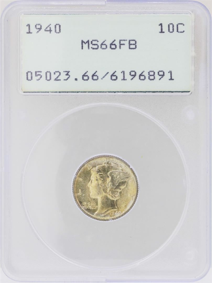 One 1940 Mercury Dime Coin PCGS MS66FB Rattler. PCGS Graded.