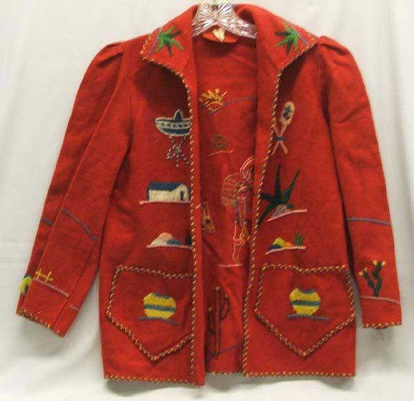 1940 Mexican Red Wool Embroideried Woman's Jacket, size small. Buyers Pay Actual Shipping and Handling Charges(see terms and conditions for more information).