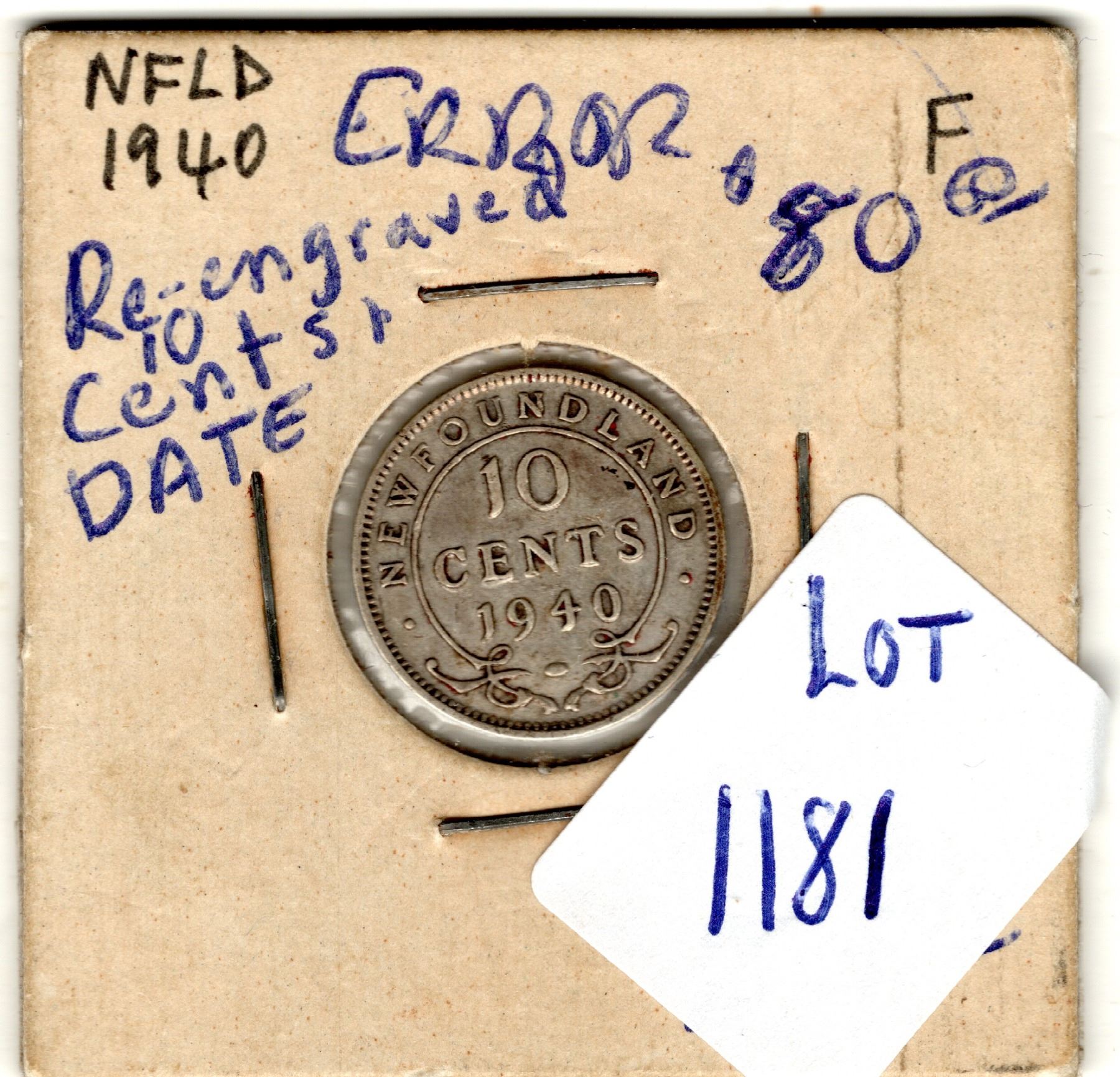 1940 NEWFOUNDLAND TEN CENT SCARCE RE-ENGRAVED ERROR COIN