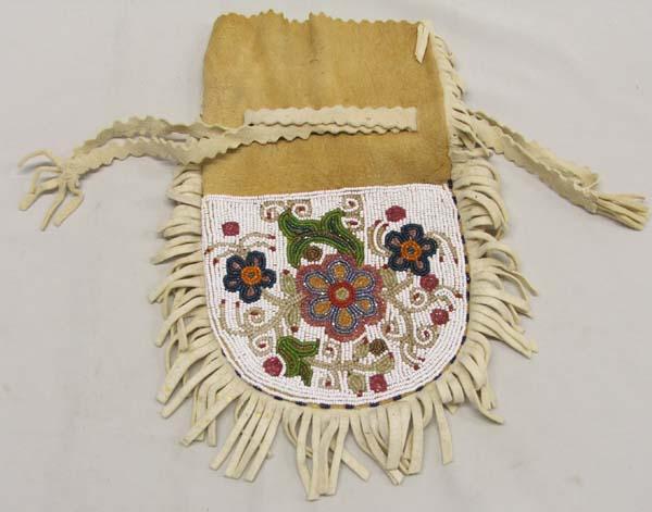 1940 Cree Indian Beaded Doe Skin Bag. Measures approx. 12''L including fringe x 8 1/2''W including fringe. Buyers Pay Actual Shipping and Handling Charges(see terms and conditions for more information).