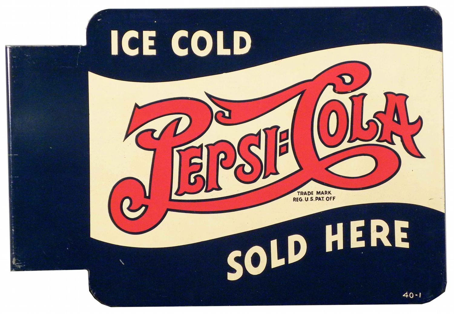 1940 Pepsi Cola Double Dot Die Cut Tin Flange Sign. Excellent condition. 14 1/2 X 10 inches.